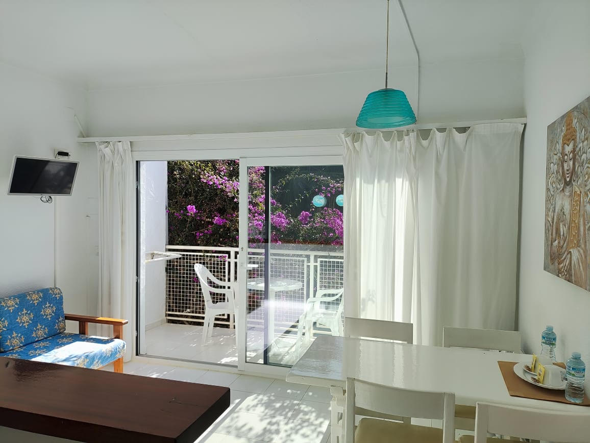 This holiday apartment accommodates up to 5 guests and it's fully equipped with a kitchenette, fridge, microwave and Wi-Fi. Some apartment have a shower, some others have a bath and it's randomly assigned upon check in. The apartment also includes a private balcony.