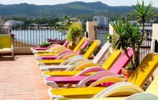 - Rooftop terrace with small outdoor pool plus solarium area with sunloungers and panoramic views (360º views over San Antonio Bay)