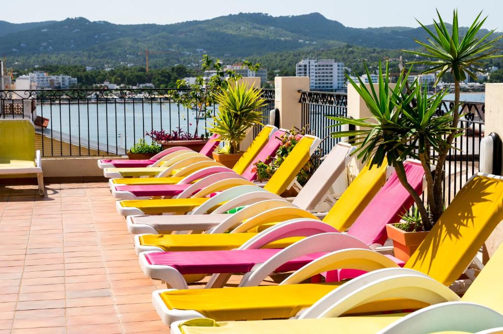 - Rooftop terrace with small outdoor pool plus solarium area with sunloungers and panoramic views (360º views over San Antonio Bay)