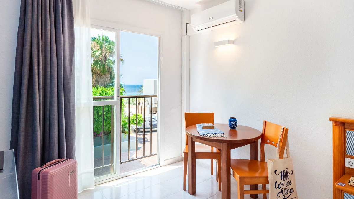 Some studios feature a balcony; some offer sea views (not guaranteed). Others have internal view or no view.