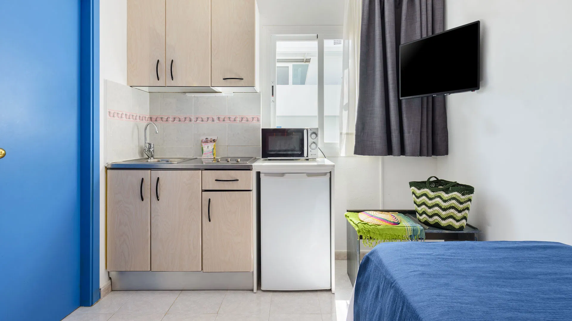This holiday studio apartment accommodates just 1 guest and it's fully equipped with a kitchenette, fridge, microwave, TV, and Wi-Fi. The apartment does not have a private balcony.
